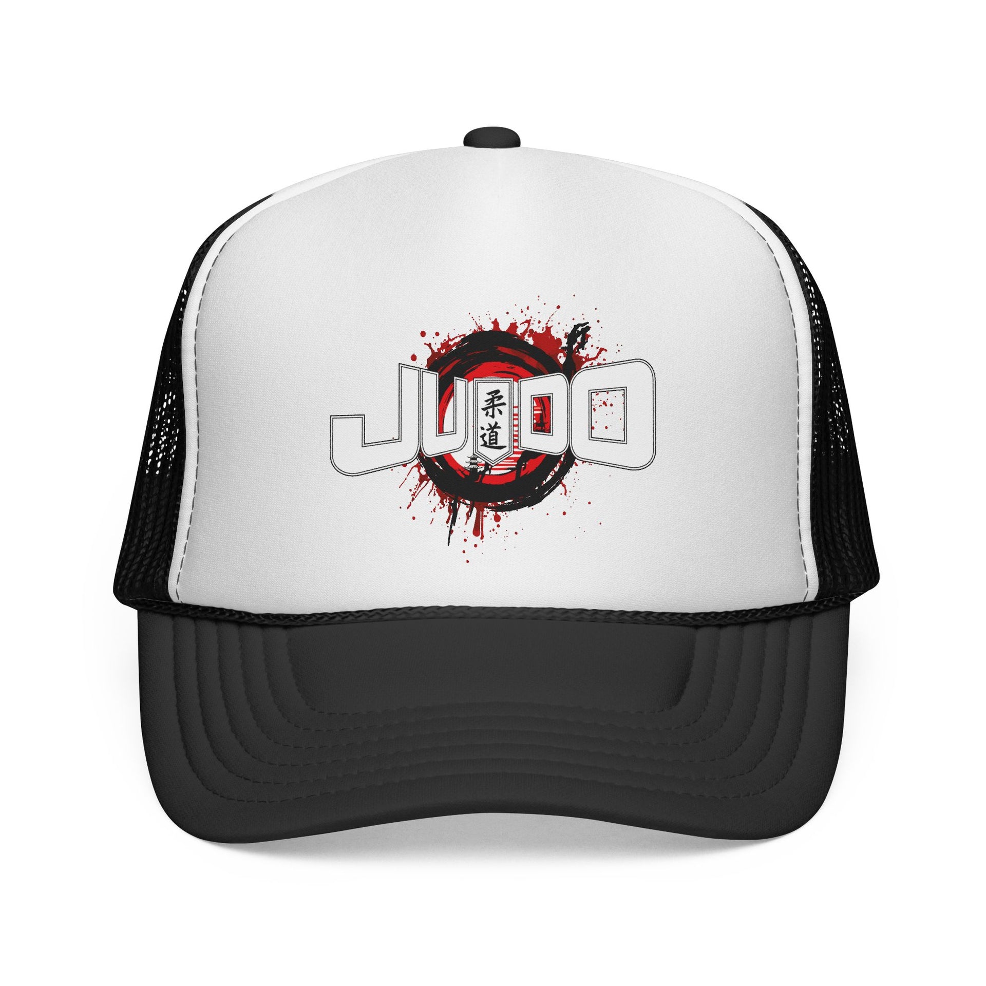 Ta czapka truckerka emanuje odważną, uliczną energią — czysty, biały, piankowy przód z przetartą grafiką JUDO na tle czerwonego okręgu i plam. Czarny, siateczkowy tył i pasujący daszek nadają jej klasyczny kontrast, jednocześnie zapewniając oddychalność w upalne dni. Noś ją na treningu, na parkingu w dojo lub gdy chcesz dyskretnie podkreślić dyscyplinę i determinację. Regulowany zatrzask i uniwersalny rozmiar ułatwiają dzielenie się nią z kolegami z drużyny lub przyjaciółmi; zagięcia rozluźniają się po kilku założeniach, dzięki czemu przód zachowuje swój strukturalny wygląd. To czapka dla osób, które ciężko trenują, cenią dyskretną wytrzymałość i chcą, aby nakrycie głowy było częścią ich codziennej rutyny.