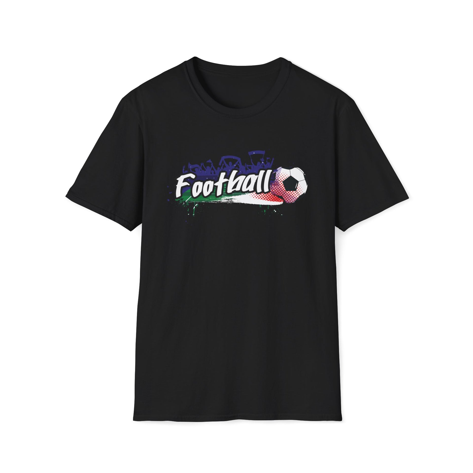 Wzbogać swoją codzienną garderobę o ten T-shirt unisex, idealne połączenie wygody i stylu. Wykonany w 100% z bawełny typu ring-spun, jest niezwykle miękki w dotyku, dzięki czemu nosi się go z przyjemnością przez cały rok. Klasyczny krój i okrągły dekolt sprawiają, że jest to uniwersalny wybór na każdą okazję, niezależnie od tego, czy wybierasz się na niezobowiązujące spotkanie ze znajomymi, czy na półformalne wydarzenie. Idealny dla entuzjastów sportu i kibiców, ten T-shirt wyróżnia się żywym, piłkarskim wzorem, który oddaje energetycznego ducha gry. To doskonały wybór na urodziny, święta lub uroczystości związane z meczem. Wprowadź sportowy klimat do swojej szafy i pokaż swoją miłość do piłki nożnej dzięki zrównoważonej odzieży dla dorosłych.